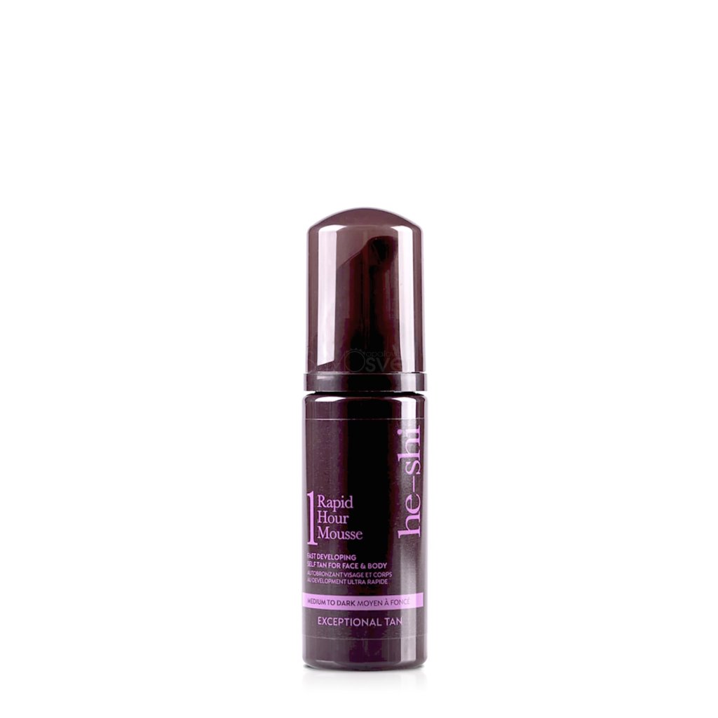 He-Shi Rapid 1Hour Mousse je jemná samoopaľovacia pena v praktickom 50ml balení, ktorá stmaví pokožku už za 1 hodinu a vytvára dokonale rovnomerné opálenie. Hĺbku a intenzitu opálenia si naviac môžete regulovať dobou pôsobenia pri aplikácii.