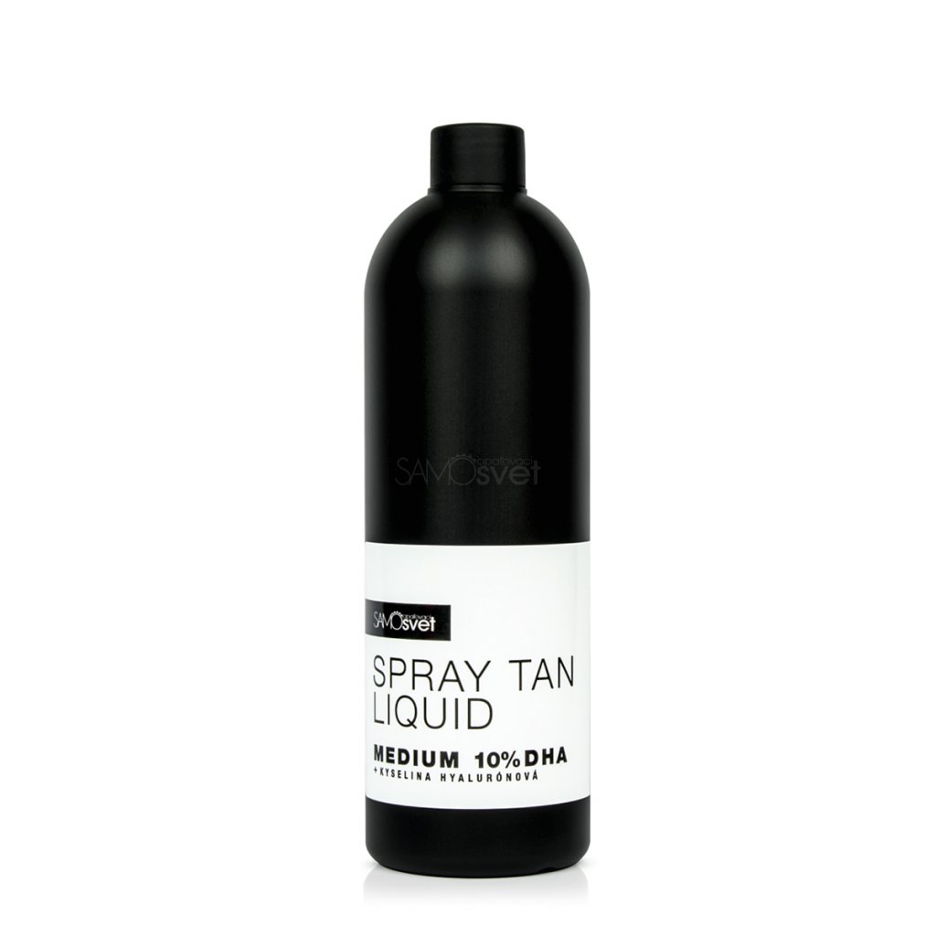 SamoopaľovacíSvet MEDIUM Spray Tan Liquid je univerzálny samoopaľovací nástrek pre MEDIUM opálenie s 10% koncentráciou prírodných samoopaľovacích látok DHA. Extra pridanie kyseliny hyalurónovej zabezpečuje dlhotrvácnu hydratáciu, spevnenie a omladenie pokožky. Kyselina hyalurónová má skvelé antioxidačné účinky a pomáha pokožke bojovať s voľnými radikálmi.